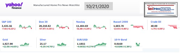 This evening’s featured focus is found following tonight’s quotable quotes, the left-right headlines, and two of our three market snapshot graphics at the closing bell today. The final market graphic that summarizes over a dozen manufactured housing industry connected stocks at the closing bell follow the featured focus, recent and related report links.