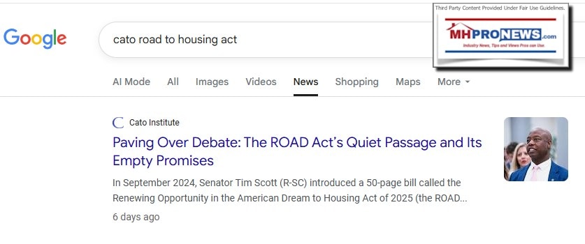 Revised Headline Cato Slams ROAD’s “Empty Promises,” Whistleblower Exposes MHI Evictions, Trump & Warren Pitch Fixes—But Without MHARR Amendments, Bipartisan Bill Risks More Unaffordable Housing.
