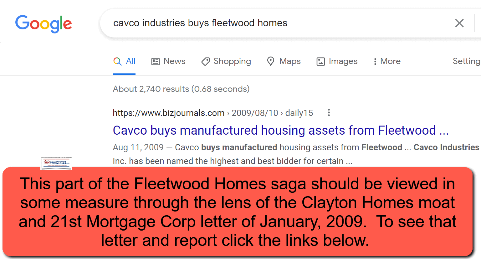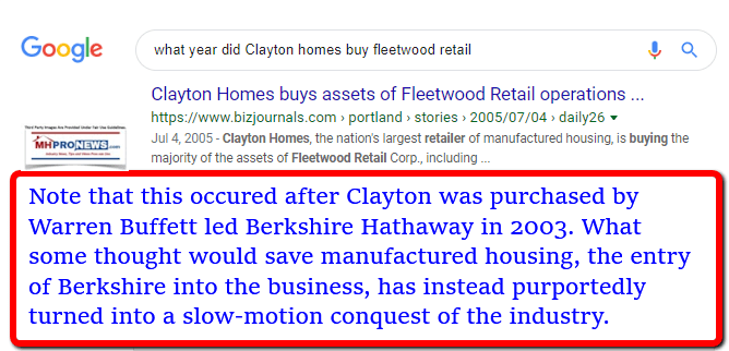 For a background flashback, on April 19, 2005, the LA Times reported that “Charley Lott is the second retired manager to return to the company in less than two months.” A few months later, Fleetwood Retail Corp. ended up as Berkshire Hathaway owned Clayton Homes assets.