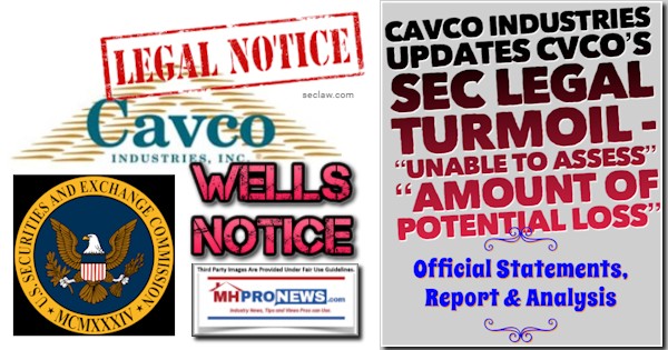 The following is the recent official statement from Cavco Industries (NASDAQ:CVCO) regarding their ongoing Securities and Exchange Commission (SEC) woes. It will be followed by additional information from left-of-center CNBC, plus further related information and analysis.
