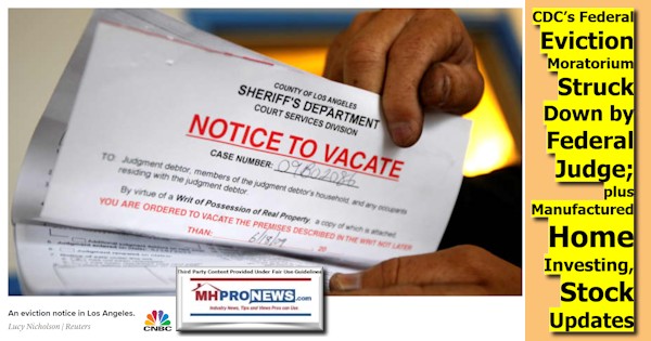 On a day that saw mixed results on manufactured home connected equities today, let’s press ahead toward our other business-nightly features and tonight’s focus on the legal decision that could in the near term result in a wave of evictions.