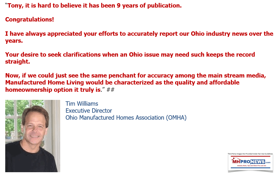 Tony earned a journalism scholarship and earned numerous awards in history and in manufactured housing. For example, he earned the prestigious Lottinville Award in history from the University of Oklahoma, where he studied history and business management. He’s a managing member and co-founder of LifeStyle Factory Homes, LLC, the parent company to MHProNews, and MHLivingNews.com. This article reflects the LLC’s and/or the writer’s position, and may or may not reflect the views of sponsors or supporters.