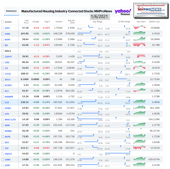 Manufactured Housing Industry Investments Connected Closing Equities Tickers