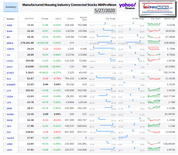 Manufactured Housing Industry Investments Connected Closing Equities Tickers