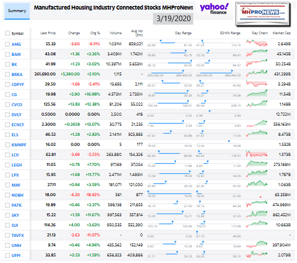 Manufactured Housing Industry Investments Connected Closing Equities Tickers