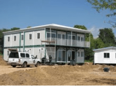 Chinese factory home and office builders are targeting world markets, including “North America.” Western style literature uses key buzz words: low cost construction, green building, sustainable, easy transport and rapid installation. They build to Europe’s CE standards, Australia’s AS and the UL standards for North America. They produce container houses, prefab and modular house construction. Offices and housing for mineral and “oil camps,” power station, civil facilities are part of their offerings. The homes are shipped in containers. 2 man teams are said to be able to assemble the home in two days. Some floor plans resemble single section HUD Code configurations. The homes can be single or multiple levels. Some look like HUD Code multi-sectional manufactured homes once erected and installed.