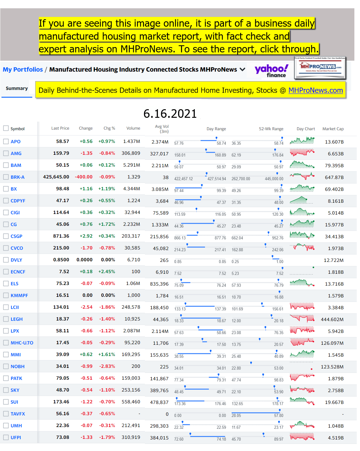 Manufactured Housing Industry Investments Connected Equities Closing Tickers