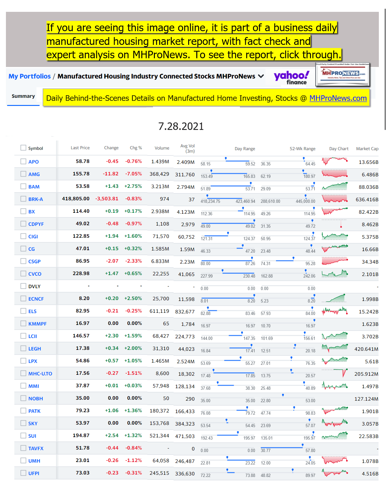 Disclosure. MHProNews holds no positions in the stocks in this report.