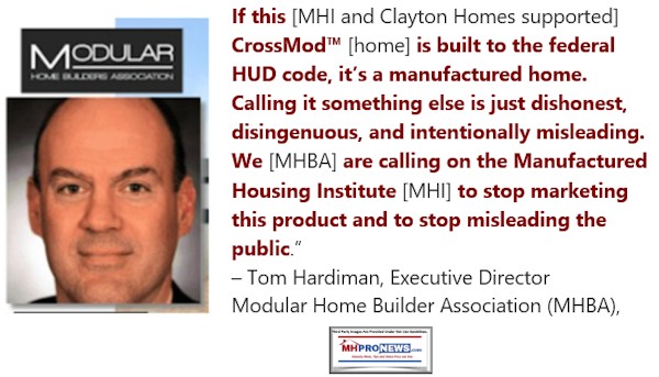 To further illustrate that claimed failure, the Modular Home Builders Association (MHBA) Executive Director Tom Hardiman directly rebuked MHI in 2020 for trying to “deceive” the public in their rebranding part of the manufactured home industry as “CrossModTM”