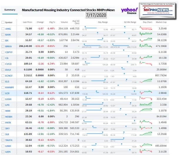 Manufactured Housing Industry Investments Connected Closing Equities Tickers