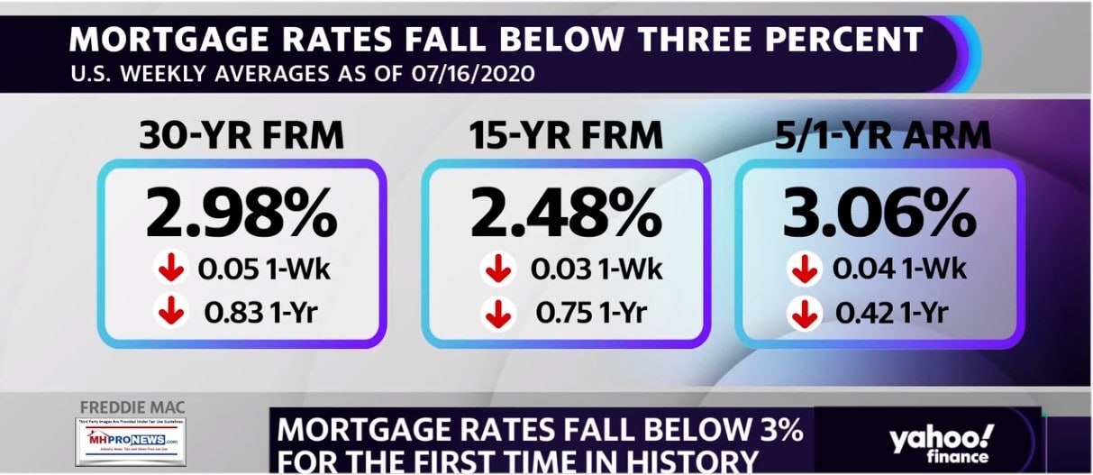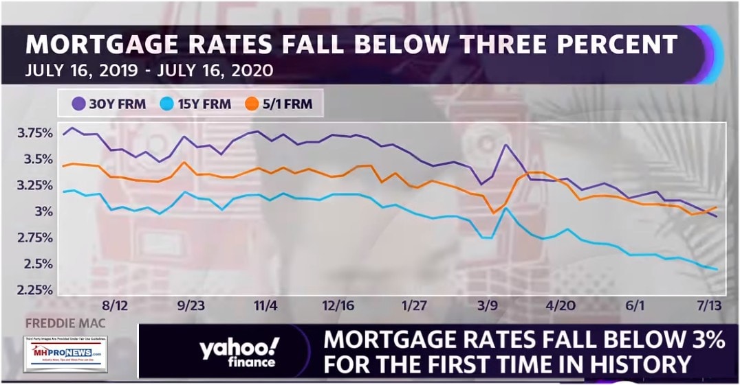 The impact of interest rates being at about a 50-year low, plus other facts that shed light on mainstream housing and thus obliquely manufactured housing, are the featured focus for this evening.