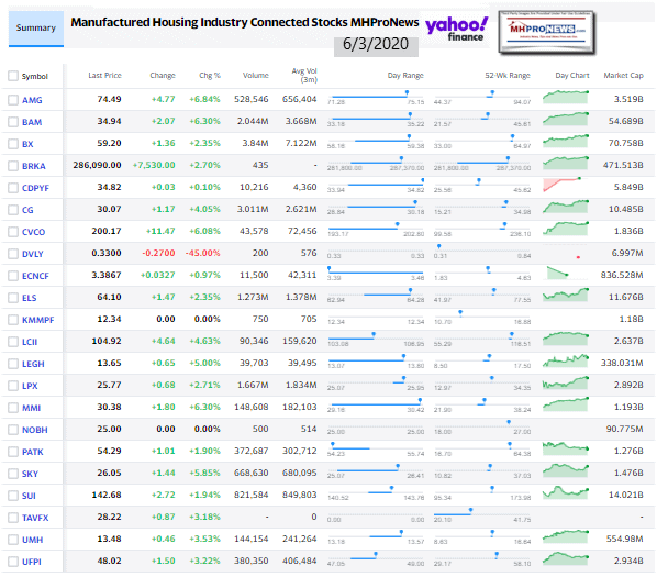 Manufactured Housing Industry Investments Connected Closing Equities Tickers