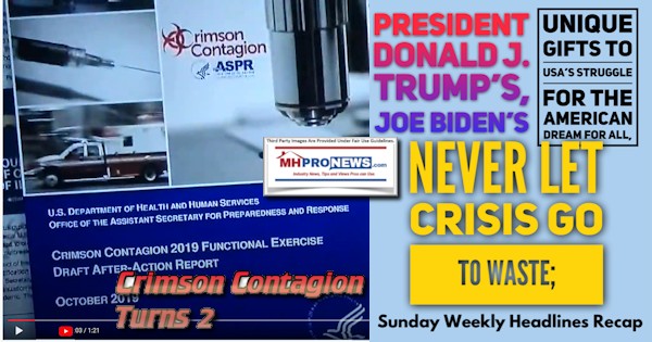Note that recently obtained federal document broadly supports our previous reporting, included in our prior Gates Foundation backed Event 201. It also supports the facts reported in the new COVID19 related report and analysis shown further below in our headlines for the week in review. That’s important for several reasons. Among them, is it should give confidence to our readers that during the last number of years, when we report on an issue over time that MHProNews/MHLivingNews reporting proves to be reliable and accurate. It may explain why our reports and analysis demonstrably lead that of all other serious trade publishers in our industry. Like it or not, professionals from Wall Street to Washington, D.C., to academics, factory-built housing pros, and others have come to know that our reports routinely stand the test of time.