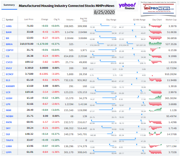 Manufactured Housing Industry Investments Connected Closing Equities Tickers