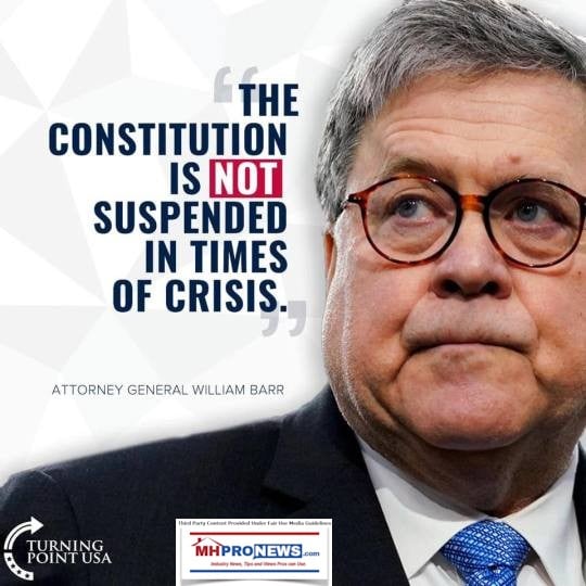 “Many policies that would be unthinkable in regular times have become commonplace in recent weeks, and we do not want to unduly interfere with the important efforts of state and local officials to protect the public. But the Constitution is not suspended in times of crisis. We must therefore be vigilant to ensure its protections are preserved, at the same time that the public is protected.” So said U.S. Attorney General William Barr in a memo linked here on April 27, 2020.