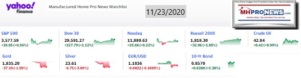 The balance of the headline topics are found in our featured focus segment tonight. As normal, that is found beyond tonight’s quotable quotes, the left-right headline bullets, and two of our three market summary graphics for today. The manufactured home industry connected equities snapshot at the closing bell are found beyond the featured focus as well as the recent and related linked reports.