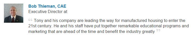 Or what better way can you start to change the image with public officials than by showing an interview with an independent house inspector who has inspected thousands of houses, and hundreds of HUD Code MH, and then says that MH is consistently better built than a conventional house is?