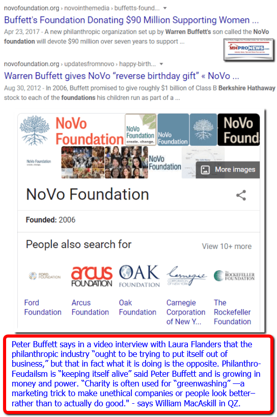 MHProNews and our MHLivingNews sister site for several years have been unraveling the threads that connect Warren Buffett, his close ally Bill Gates and other billionaires to what Peter Buffett called “Philanthropic Colonialism” and he concurred with Laura Flanders with the “Philanthro-Feudalism” nomenclature.