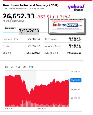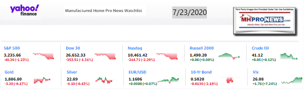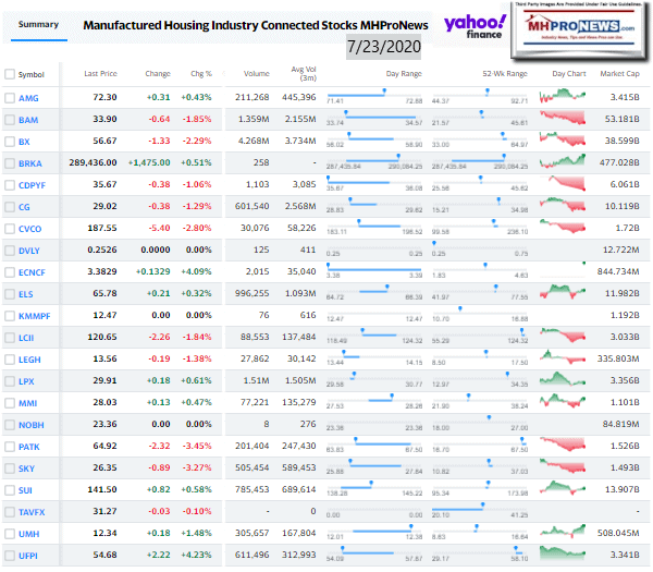 The balance of the featured focus segment of this evening’s report is found beyond the left-right headline news bullets and 2 of our 3 market snapshots at the close today. The manufactured housing industry connected stocks are near the end of the report each evening, after the featured focus and the related/recent report links.