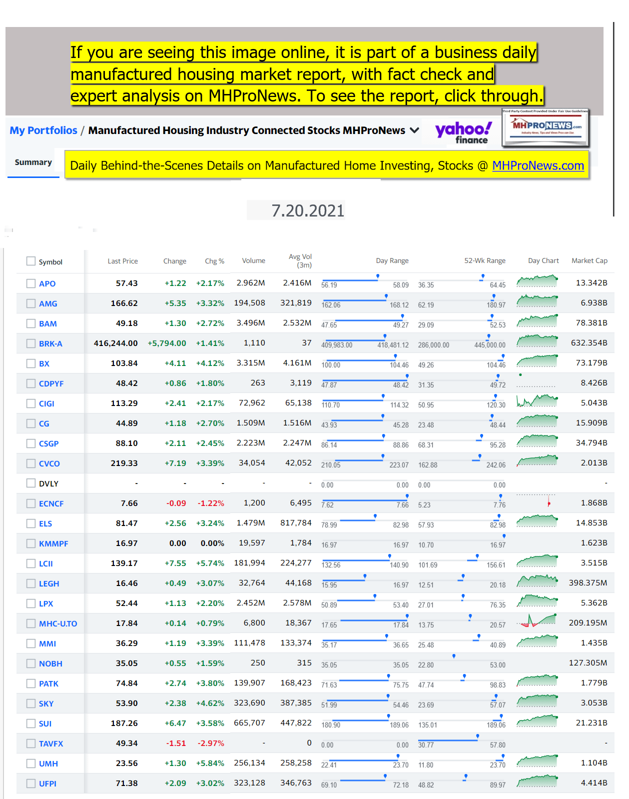 Manufactured Housing Industry Investments Connected Equities Closing Tickers