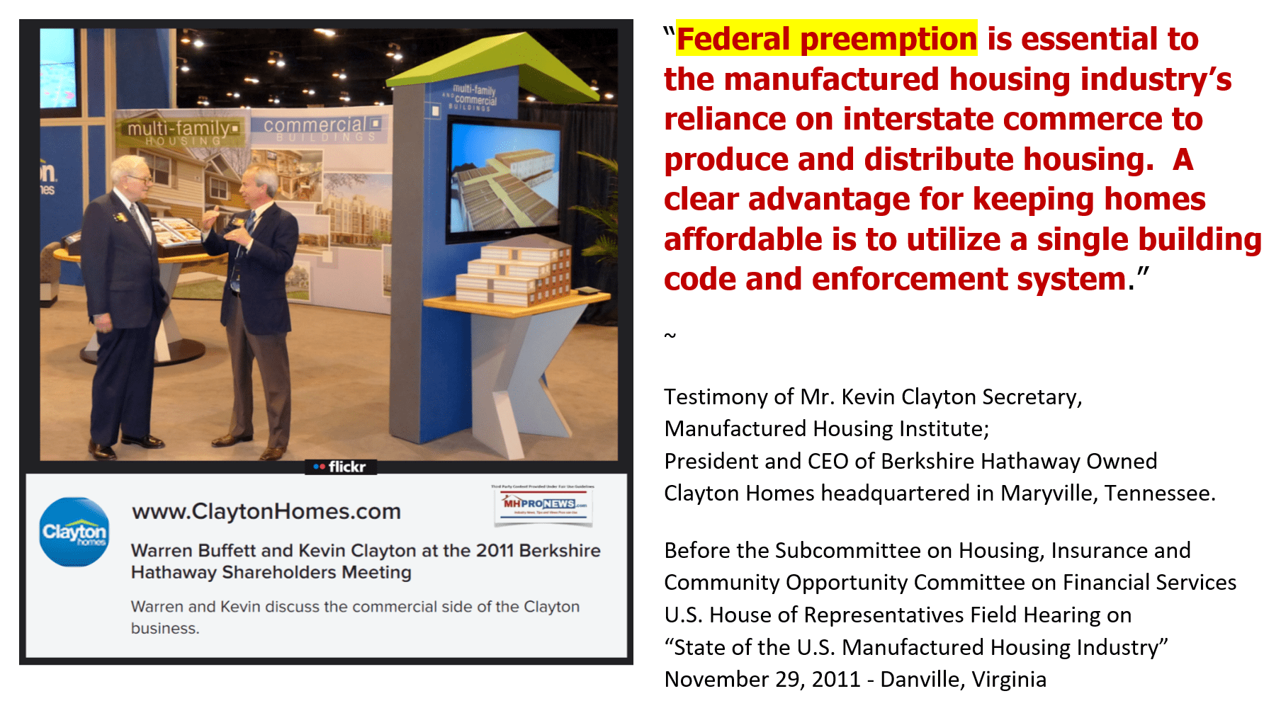 Berkshire Hathaway is the parent company to Clayton Homes, 21st Mortgage, Vanderbilt Mortgage and other factory built housing industry suppliers.