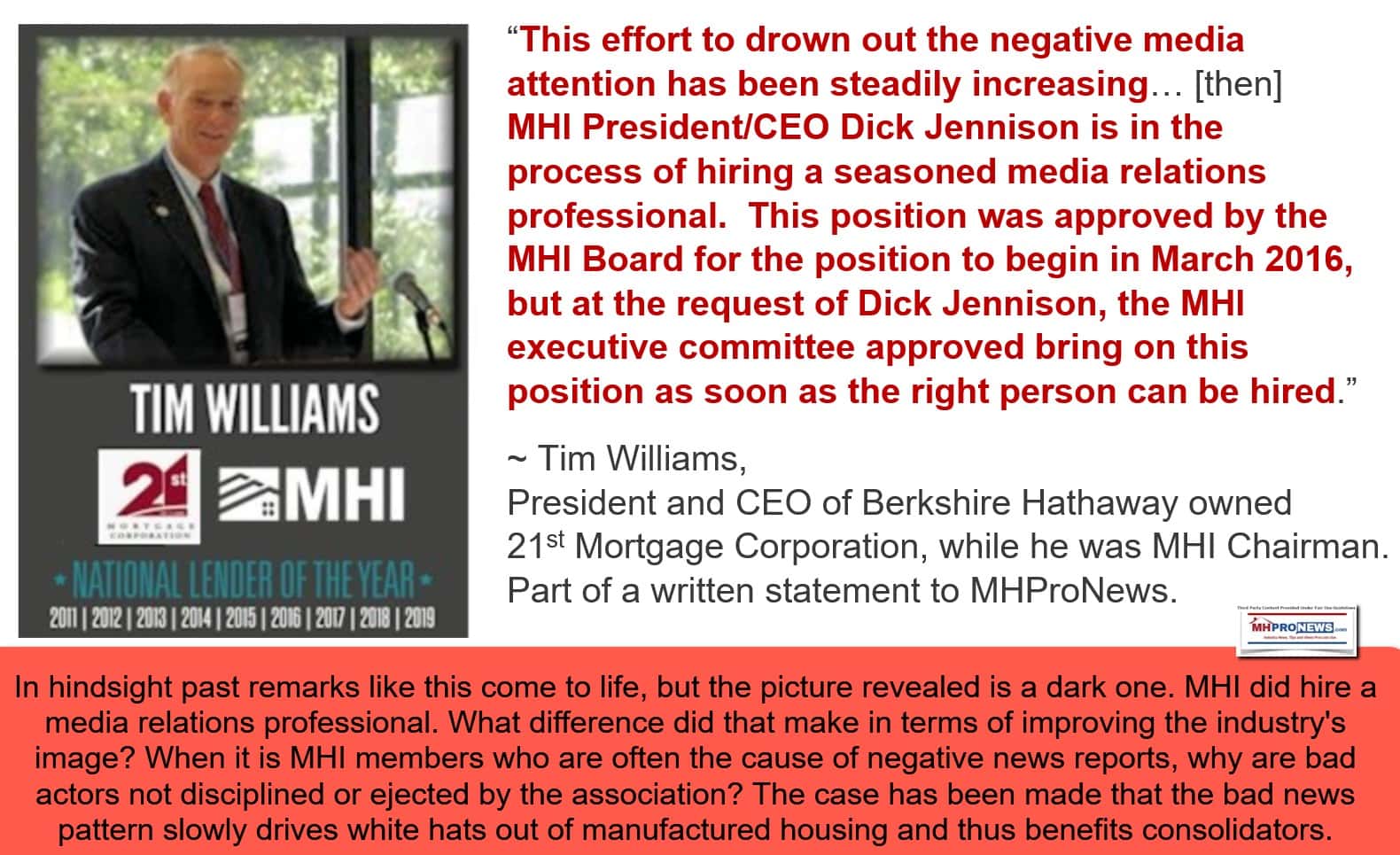 Given that MHI has a staff which includes a paid public relations professional, why is it that MHI has not addressed that issue? A Google search on this date reveals no evidence that MHI has published a counter to his arguably errant and misguided claims about manufactured homes.