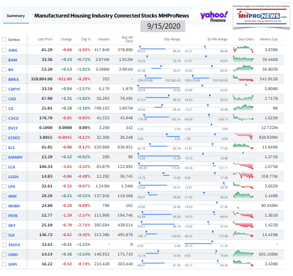 Manufactured Housing Industry Investments Connected Closing Equities Tickers