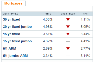 CNBC reports that one outcome from the debt ceiling hike debate was a drop in the Treasury rate. This in turn moved mortgage rates to near new lows. 30 year rates are at 4.45 percent from 4.57 percent, and the 15 year rate made a new low of 3.52 percent, per the Mortgage Bankers Association. Rates pushed refinance applications up 7.8 percent and purchase applications up 5.2 percent (both seasonally adjusted). “Refinance application volume increased, but even though 30-year mortgage rates are back below 4.5 percent, the refinance index is still almost 30 percent below last year’s level. Factors such as negative equity and a weak job market continue to constrain borrowers,” notes the MBA’s VP of research and economics, Michael Fratantoni. “Purchase activity increased off of a low base, returning to levels of one month ago, but remains weak by historical standards.”