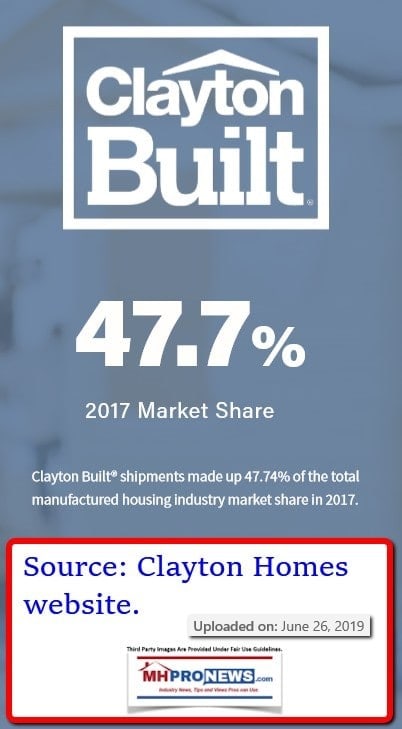 See the related report linked here. There are several reasons to believe that this ploy initially involved Berkshire Hathaway owned brands, but later included other firms involved in the Manufactured Housing Institute (MHI). See linked reports that detail prima facie evidence of arguably illegal behavior found at links herein. Perhaps it is a coincidence. But since MHProNews produced this graphic and has been spotlighting these concerns, Clayton has largely held their market share steady. Furthermore, they have arguably tried to mask their true market size by publishing inaccurate information about their market share levels. Coincidences, or part of the ploy to escape as much regulatory scrutiny as possible?