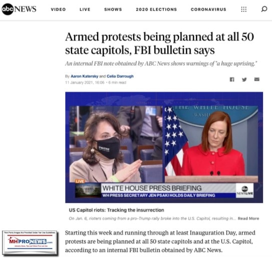Note that among the topics that Greenwald examines is what the FBI and several mainstream, often left-of-center news reports said was coming on January 20, 2021. Namely, armed Trump supporters were supposed to be at 50 state capitols and in Washington, D.C. What happened to that? Why did that not materialize? Additional information, MHProNews analysis and commentary will follow.