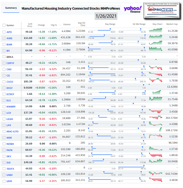 Manufactured Housing Industry Investments Connected Closing Equities Tickers