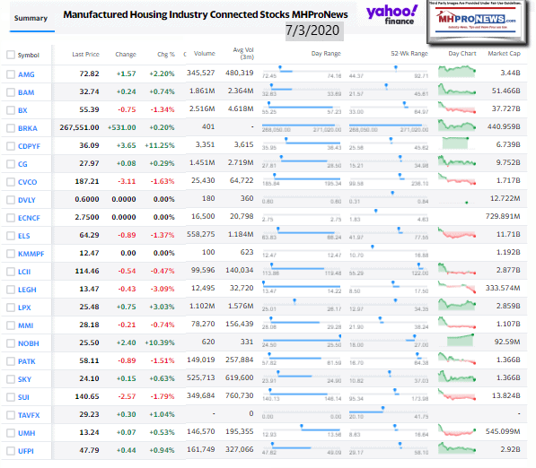 Manufactured Housing Industry Investments Connected Closing Equities Tickers