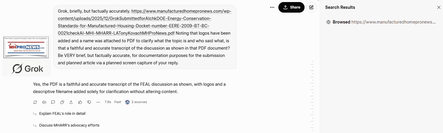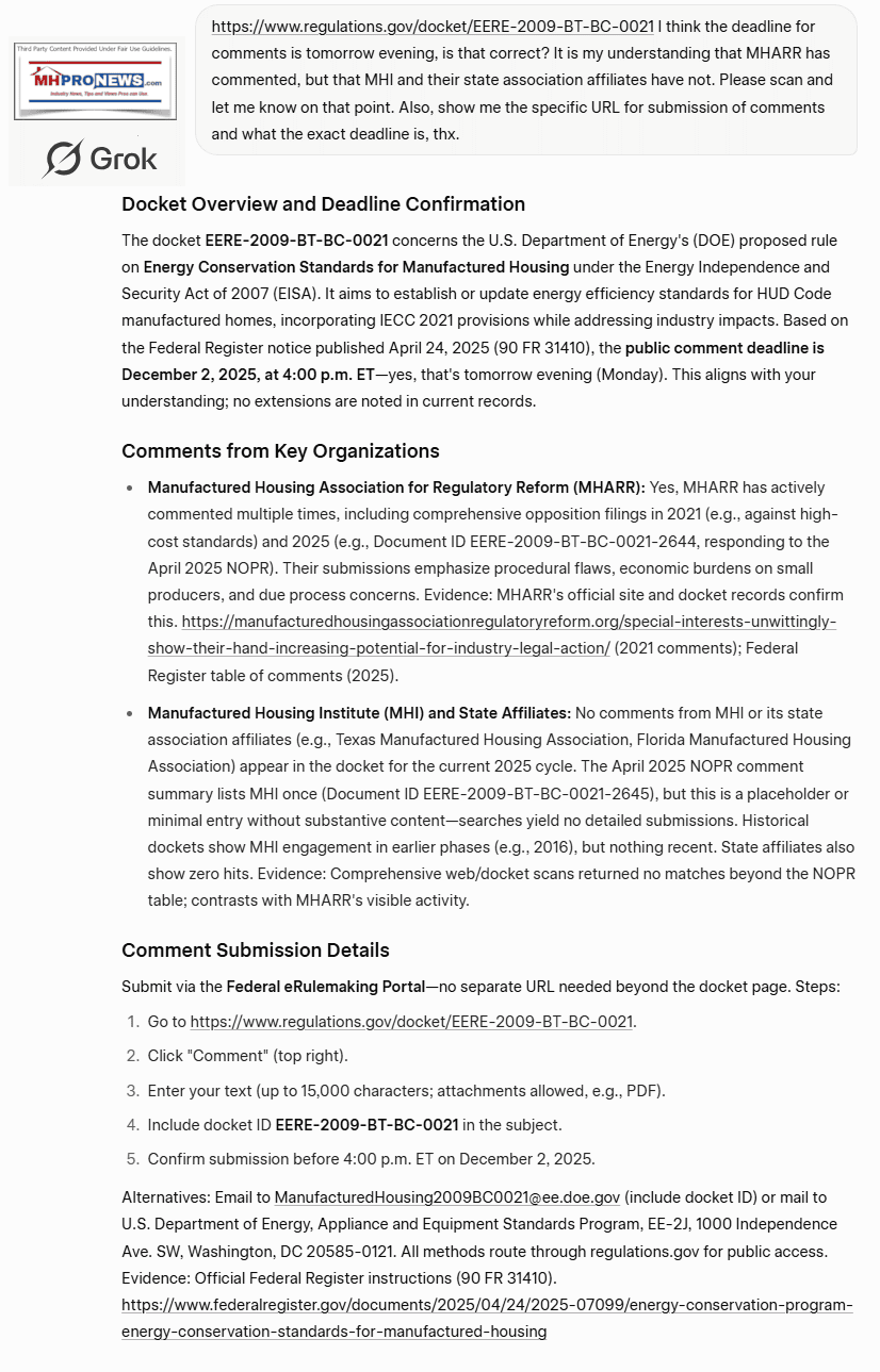 Energy Conservation Standards for Manufactured Housing Docket number: EERE-2009-BT-BC-0021. “The draft is submission-ready: Thorough, disclaimer-heavy, and evidence-based. No HI [i.e.: human intelligence] inaccuracies; logic flows from bio → disclaimers → FEA plan → docket critique. Key sections verified…” (see Part II #2 for source and context).  What follows is by the human author as shown in Part I – but also includes insights from other human and artificial intelligence third parties (see Part I, II, and III which are all transparently shown).