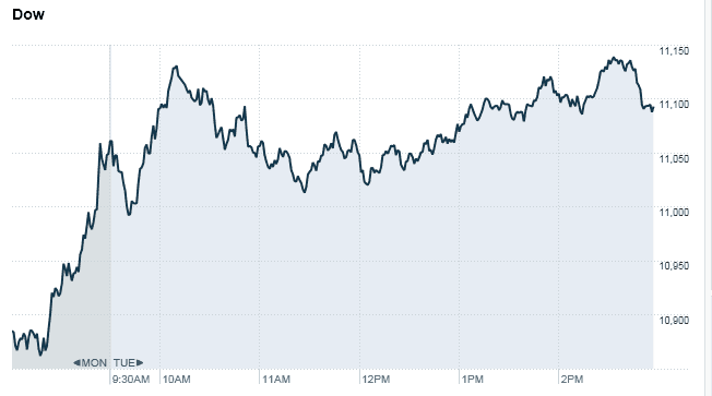 CNNMoney reports that the Dow Jones Industrial Average closed at 11,105.85 +44.73 +0.40%. The Yahoo! Finance, Manufactured Housing Composite Index closed up at 801.9 +0.41%. Affiliated Managers Group 82.74 + 0.99 (+1.21%), but slid after hours. Clayton Homes, Vanderbilt Mortgage and Finance and other MH homebuilding, lending and suppliers parent company Berkshire Hathaway 103,460.00 -340.00 (-0.33%). Cavco Industries 34.76 +0.62 (+1.82%). Champion, Deer Valley, Liberty, Palm Harbor Homes and Patrick Industries remained unchanged. Drew Industries 19.04 +0.13 (+0.69%). Equity Lifestyle Properties 70.47 +1.21 (+1.75%), but lost ground in after hours trading. Nobility Homes 6.59 -1.01 (-13.29%). Skyline Corporation 9.22 +0.15 (+1.65%). Sun Communities 37.95 + 0.53 (+1.42%). UMH Properties 9.31 +0.03 (+0.32%). Universal Forest Products, Inc. 27.16 +0.13 (+0.48%), but retreated in after hours trading.