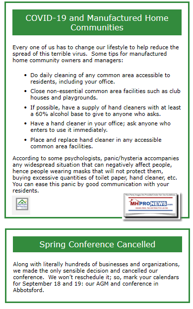 The Manufactured Home Park Owners of Alliance of British Columbia (MHPOABC | www.mhpo.com) sent their members the following message on 3.27.2020, which their executive director Al Kemp provided to MHProNews. It provides a snapshot of challenges that they are facing north of the border in the wake of the global COVID19 pandemic.