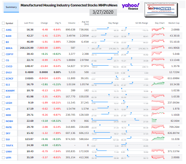 Manufactured Housing Industry Investments Connected Closing Equities Tickers