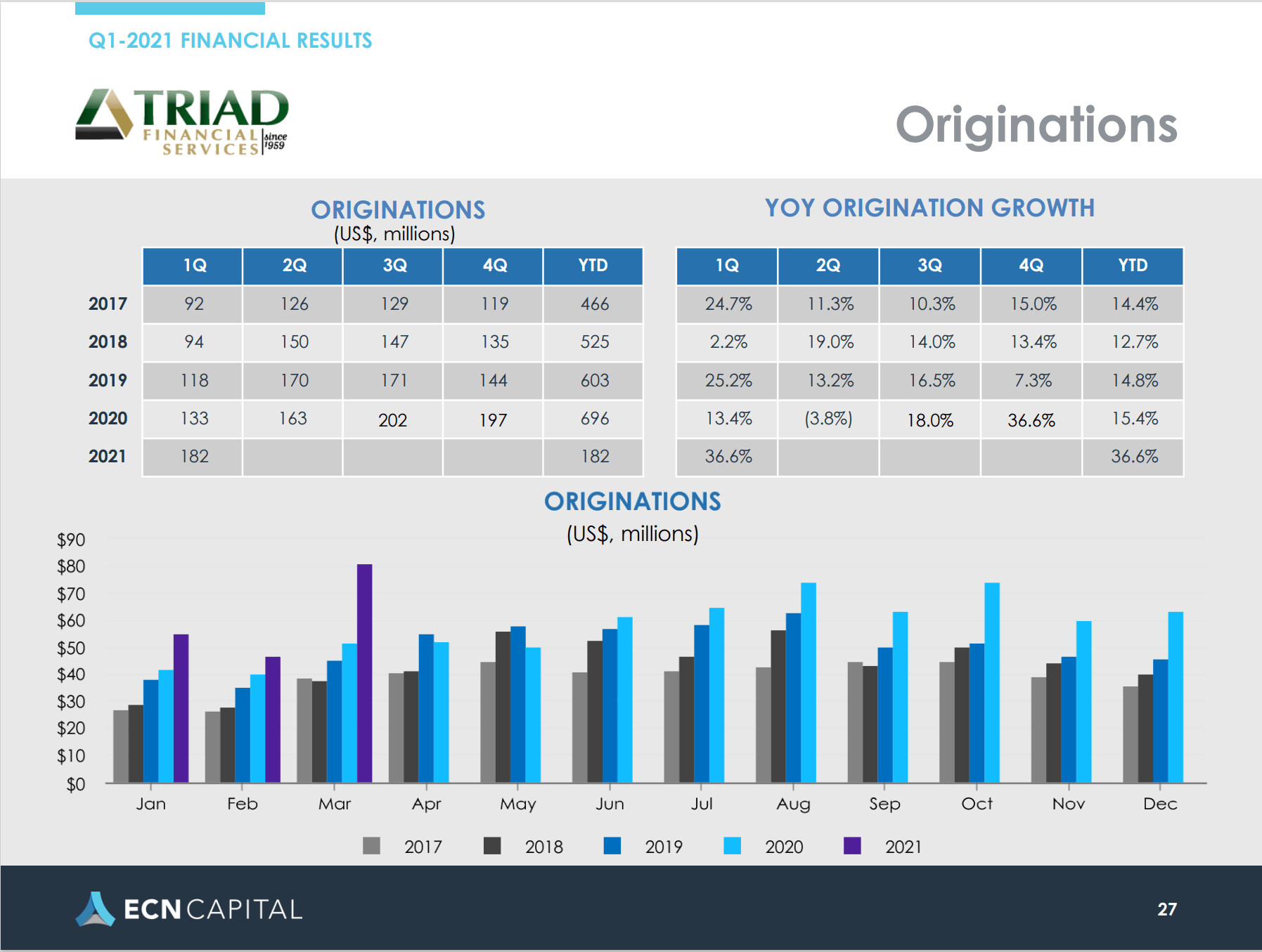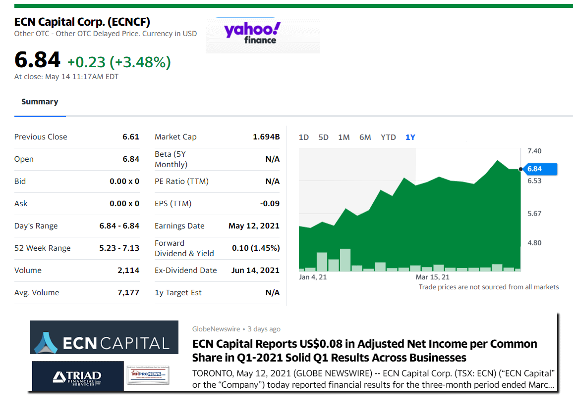 - NOTE: The chart below includes the Canadian stock, ECN, which purchased Triad Financial Services, a manufactured home industry lender