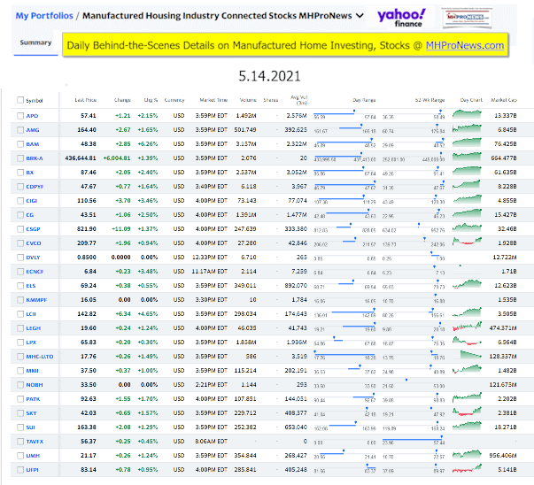 Manufactured Housing Industry Investments Connected Closing Equities Tickers