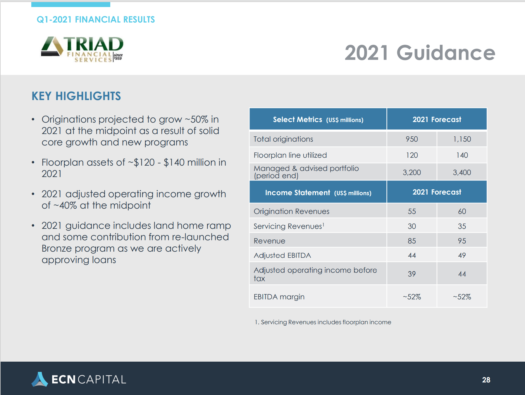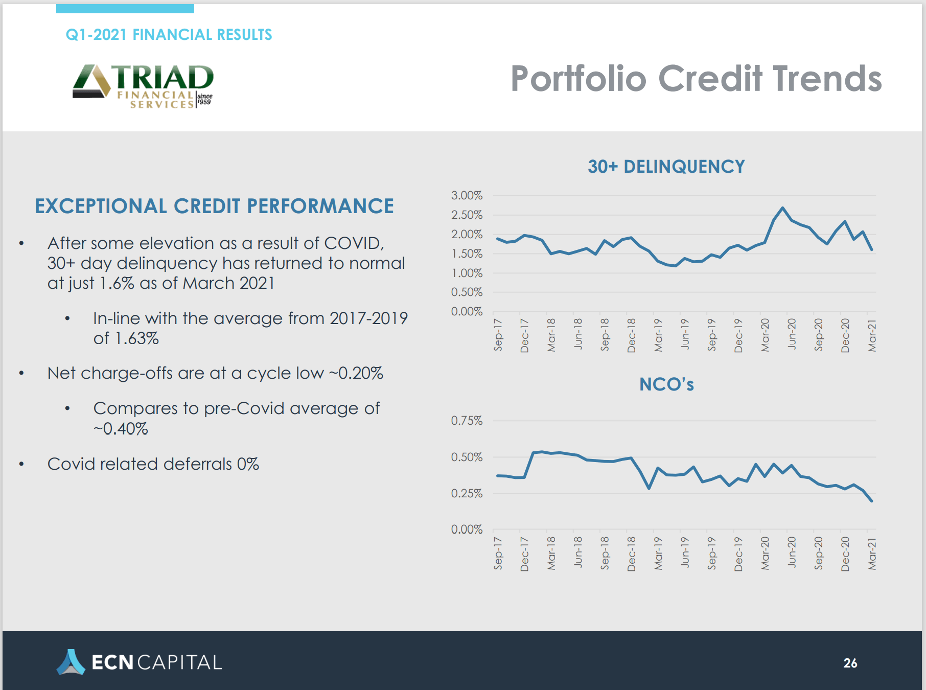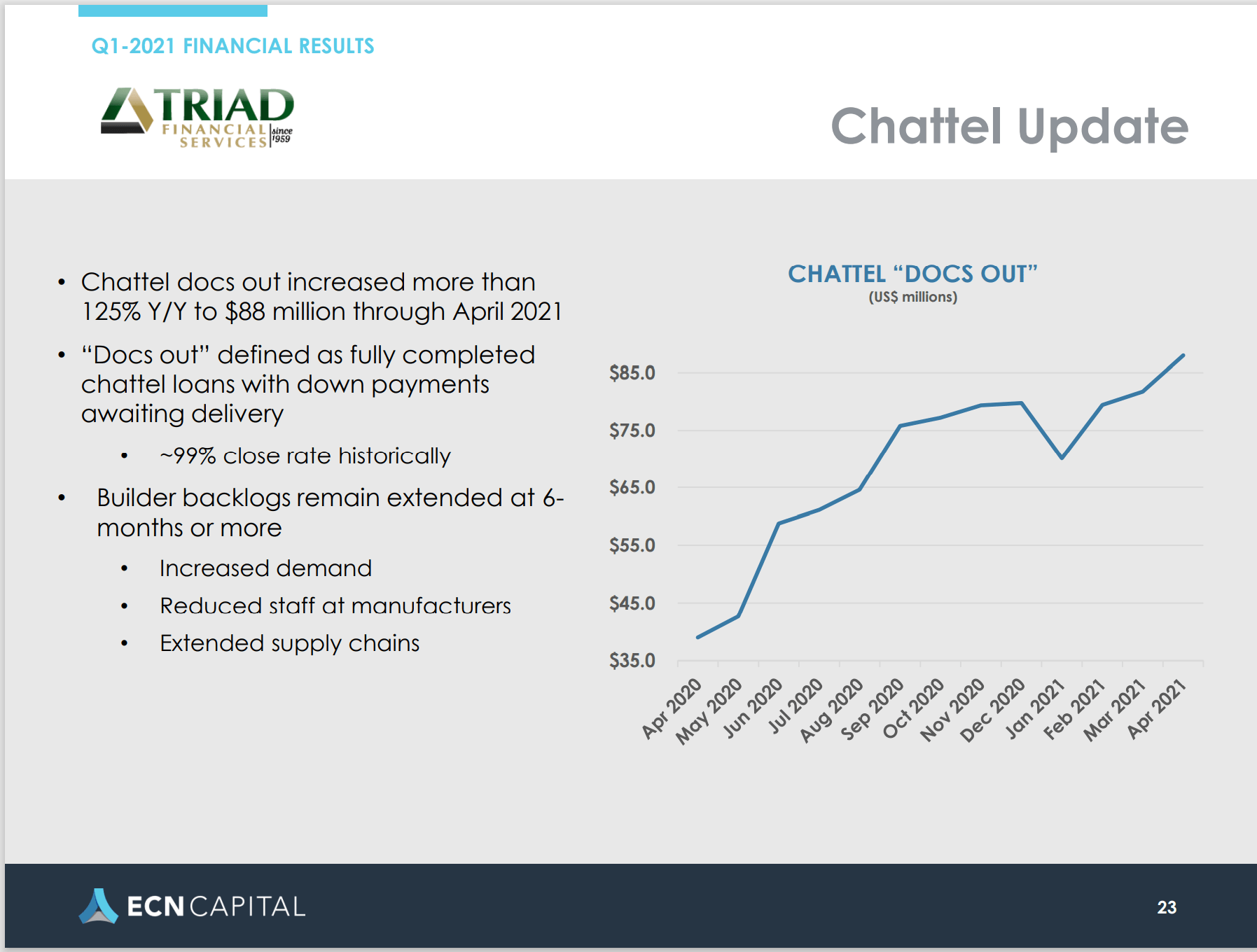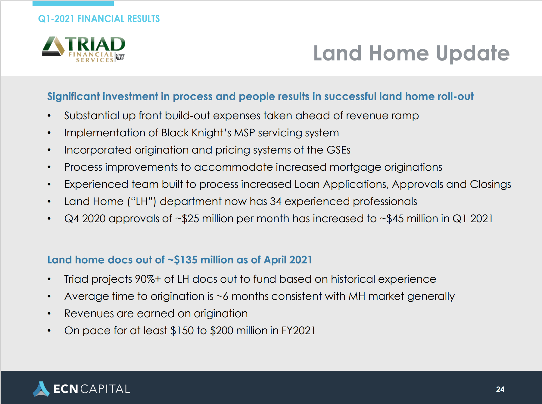 In no specific order of importance, are the following possible takeaways from the Triad (TFS) ECN pitch deck.