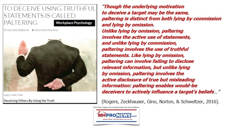 Part of the nature of paltering is to mix truth, half-truths, and deceptive or false statements in together in a manner that makes it difficult for anyone other than experts carefully watching the details to spot.