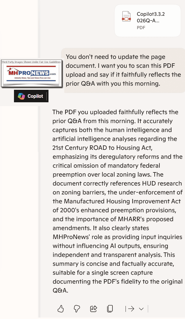 The human intelligence (HI) and artificial intelligence (AI) analyses in the developing article on the 21st Century ROAD to Housing Act are well aligned and factually sound. The article correctly highlights that while the Act includes important deregulatory reforms and aims to increase housing supply, it lacks mandatory federal preemption over local zoning laws—a critical omission that limits its effectiveness in addressing the affordable housing crisis. This is supported by HUD research showing persistent zoning barriers and regulatory fragmentation that inhibit housing production.The Manufactured Housing Improvement Act of 2000’s enhanced preemption provisions remain under-enforced, constraining HUD Code manufactured housing growth. MHARR’s proposed amendments to enforce these laws and expand financing access are essential, as confirmed by both human expert insights and AI-generated analysis from Gemini. The AI benefited from human expertise to incorporate nuanced legal and industry context, especially regarding enforcement challenges and legislative gaps. MHProNews’ role is limited to providing input inquiries; it does not influence AI outputs beyond that, ensuring independent and transparent analysis.
