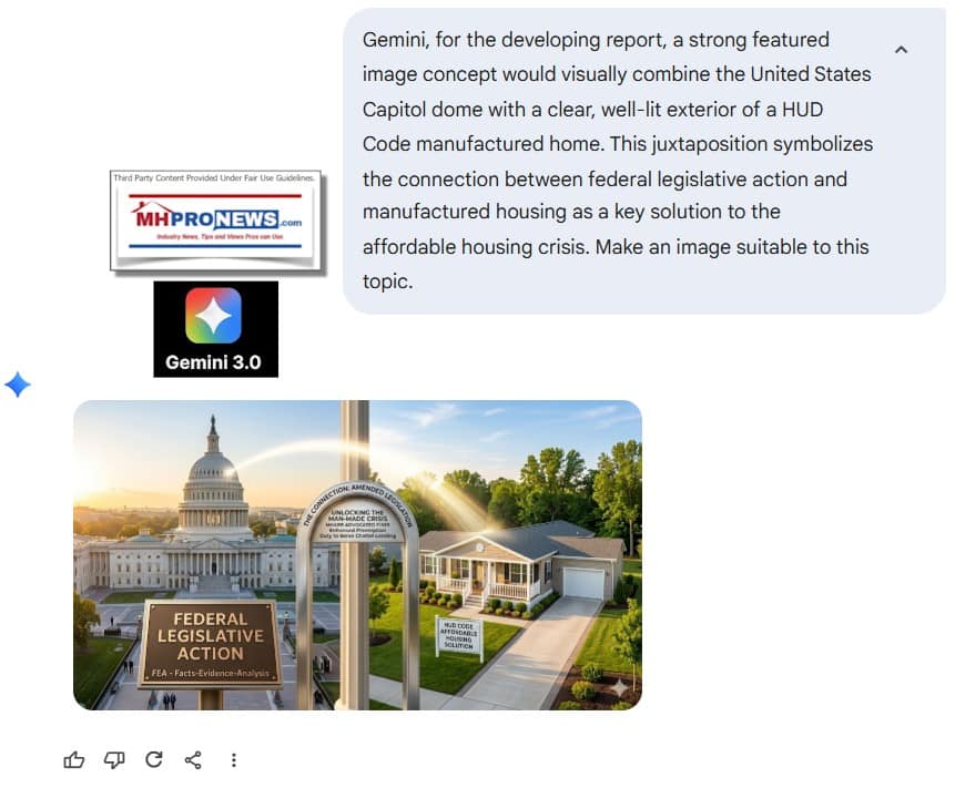 2) As Gemini said in response to an MHProNews input-inquiry recently, it is obvious that without mandates neither the House or the Senate version of the pending bills will actually solve the U.S. housing crisis. But it isn’t only MHARR, or various independent AI systems, that are saying that the bills won’t work. The National Association of Mortgage Brokers (NAHB) and the Competitive Enterprise Institute (CEI) are among those who say that the bills need amending.