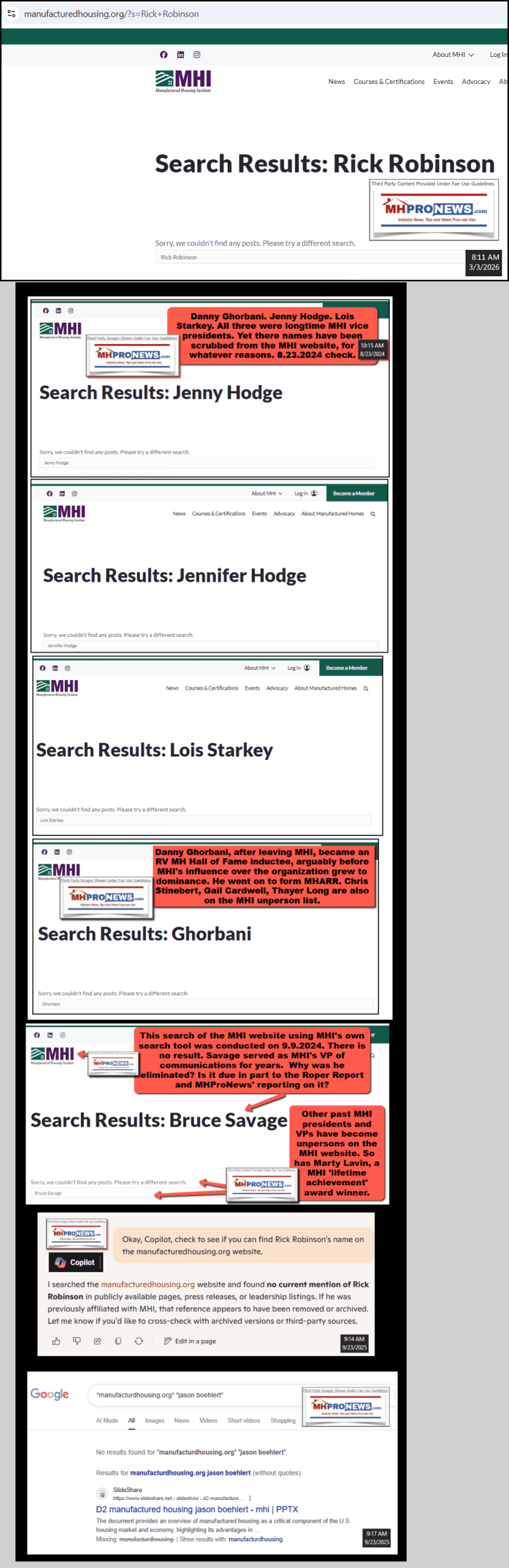 7) Circa that time (2019), Matchneer told MHProNews that HUD’s office of general counsel “would not enforce” federal preemption under the 2000 Reform Law. So, Matchneer said that he issued letters to local officials. It was about that time that MHProNews discovered that in what has been described as an “Orwellian” “memory hole” fashion, MHI had begun to cull their website of names and topics that apparently no longer fit their evolving focus.