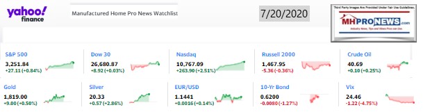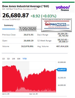 With that backdrop, following the left-right bullet headlines tonight from CNN and Fox, some quotable quotes, and two of our three market summaries at the closing bell is our featured focus this evening. The manufactured housing specific stocks and those firms with significant interests in manufactured homes and communities follows the featured focus, the recent and related reports, near the end of this business-nightly report.