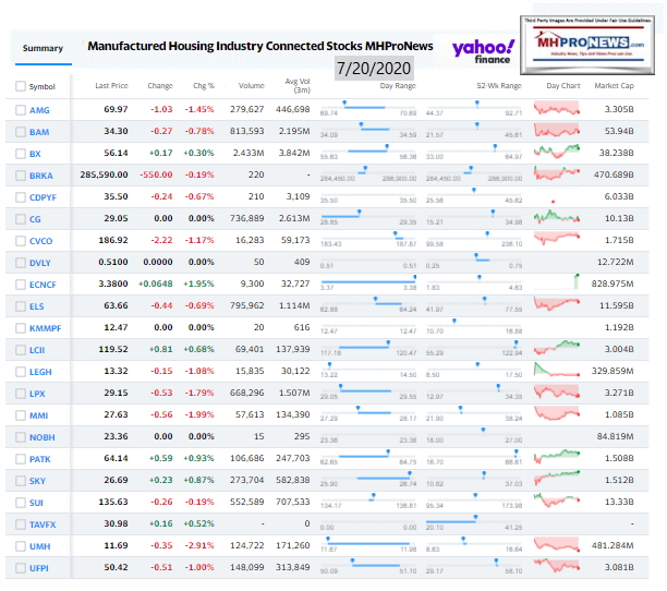 Manufactured Housing Industry Investments Connected Closing Equities Tickers