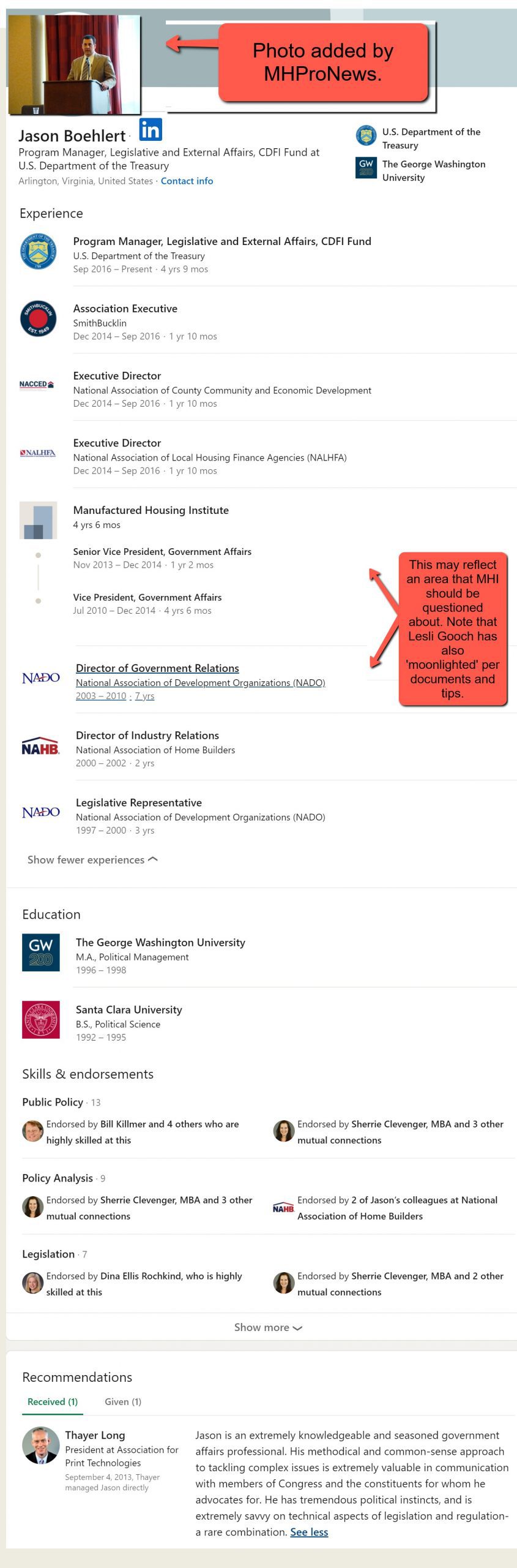 A presentation by former Manufactured Housing Institute (MHI) Vice President Jason Boehlert has surfaced. Boehlert left MHI and was replaced by Lesli Gooch, who later became MHI’s CEO. Boehlert’s power-point pitch-deck slides shared data from MHI that perhaps inadvertently, but nevertheless clearly, revealed just how badly the industry’s manufactured home industry’s independents have been harmed since the dawn of the Berkshire era in manufactured housing.
