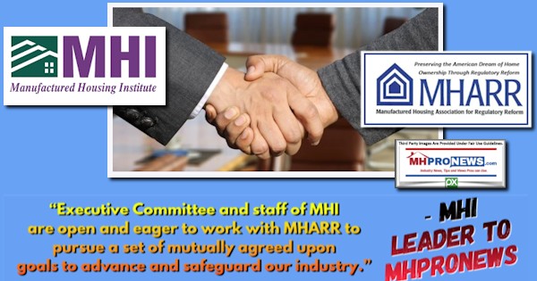 As the email thread that will be shown later below reflects, the Manufactured Housing Institute (MHI) leader that provided this information asked that the email exchanges that follows be held in confidence for a time. Per that request, it has been held until now. As the headline above stated, here is a key pull quote: “The Executive Committee and staff of MHI are open and eager to work with MHARR to pursue a set of mutually agreed upon goals to advance and safeguard our industry.”