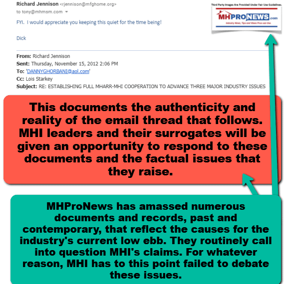 When the evidence is examined, it is difficult for MHI and their leaders to deny that they did indeed work with MHARR from time-to-time. For that matter, MHI were a periodic advertiser and source for MHProNews as well. To now posture, pretend, or otherwise avoid reality should call their position into question.