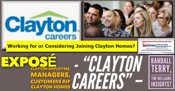 The report linked below quotes numbers of Clayton Homes employees and several managers, about their actual experience working for Clayton. For balance, there are quotes from those who worked at Clayton who have good things to say about the firm. Then there are quotes from those that claim, among other points, that working for Clayton was one of their worst decisions. Some praise Clayton’s work-life balance, while others say that Clayton is manipulative of both customers and employees.