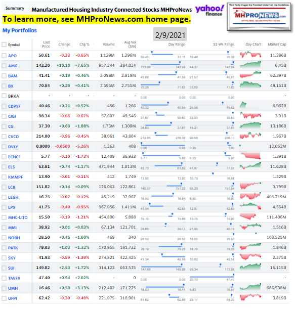 Manufactured Housing Industry Investments Connected Closing Equities Tickers